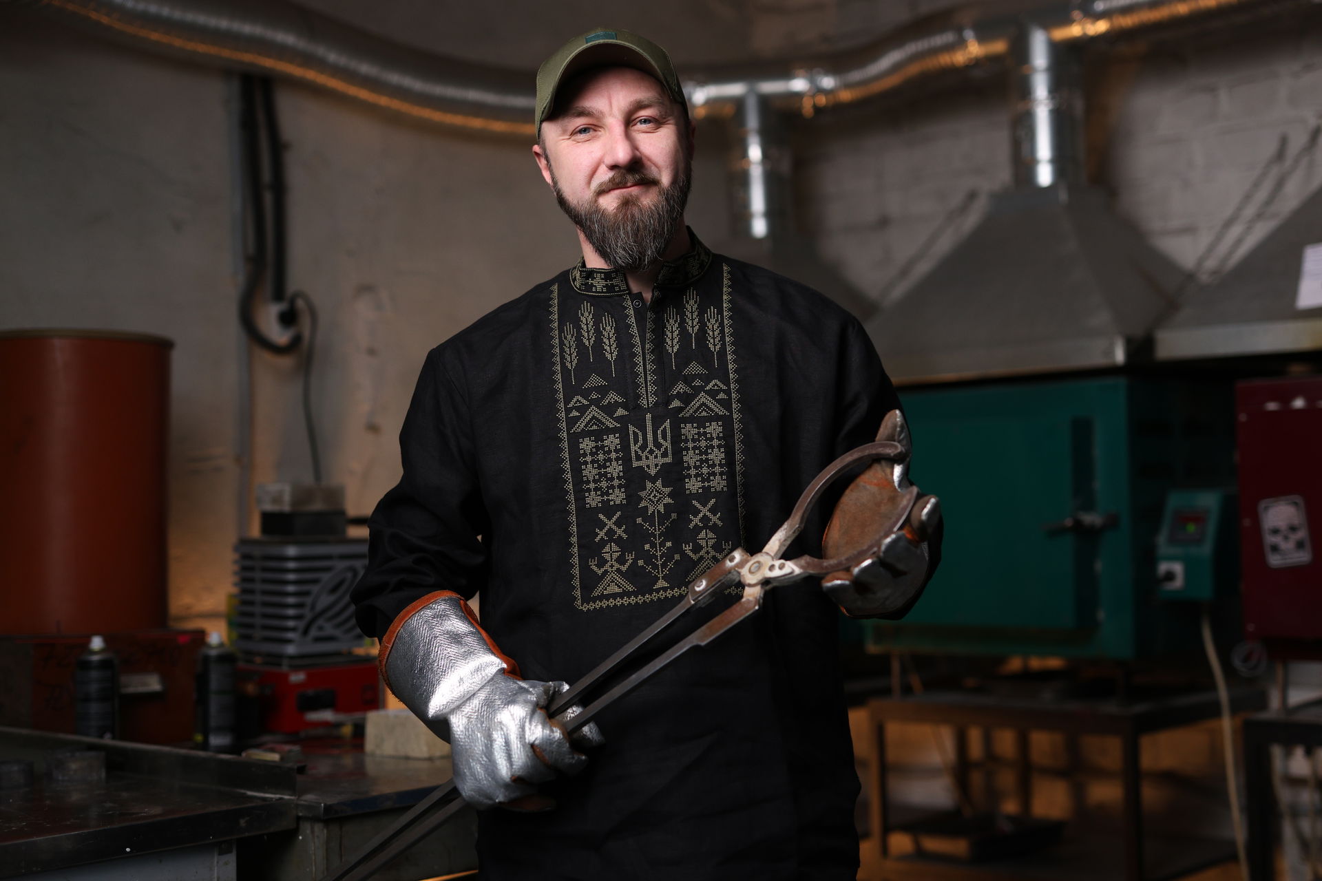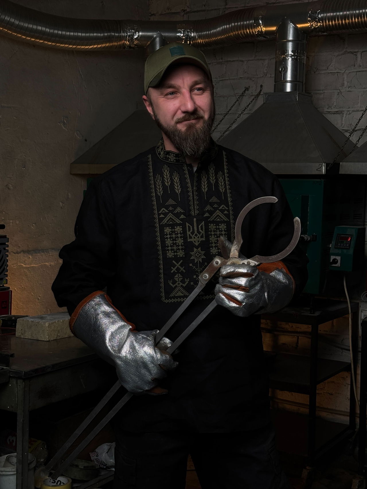 Ukrainian veterans Andriy and Mykhailo craft Saint Javelin's recycled war parts from warm shell casings collected directly from the battlefield. With proceeds supporting Ukraine's Armed Forces, the war part products transform the metal of war into ongoing support for frontline defenders.